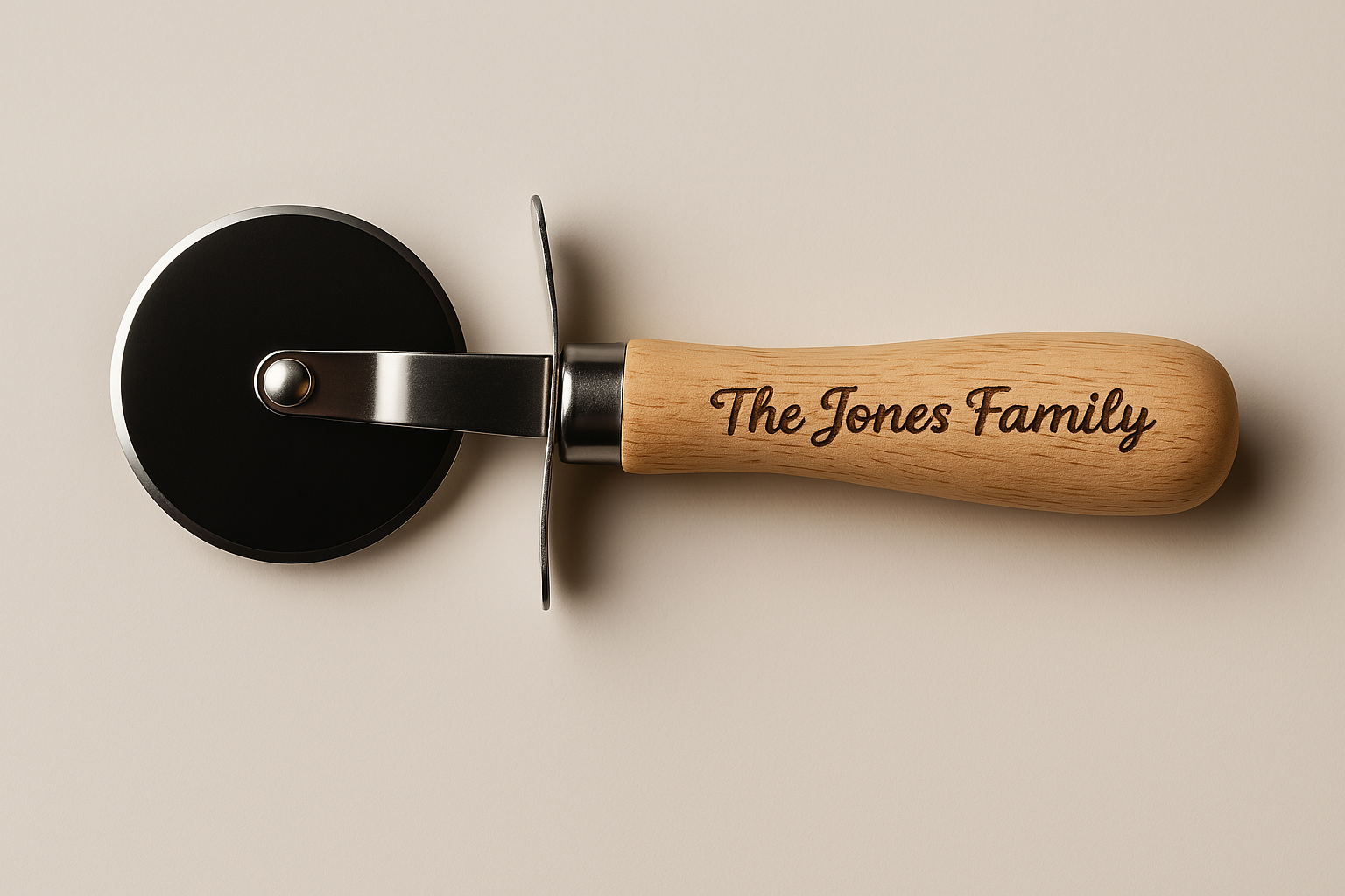 Slice in style with our custom engraved pizza cutter—where function meets personality! Featuring a durable stainless steel blade and a smooth wooden handle, this cutter is both practical and gift-worthy. Add a family name, fun phrase, or special date for a one-of-a-kind kitchen keepsake.
